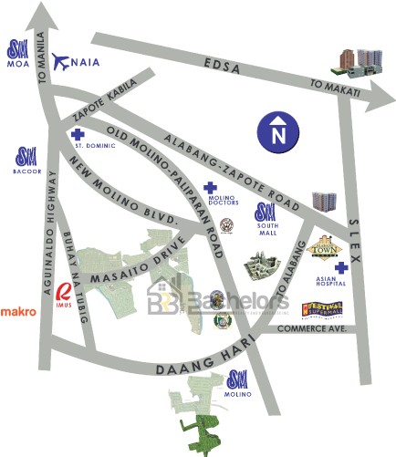 •From Coastal Road, head straight to Emilio Aguinaldo Highway, then take New Molino Blvd., Turn right at the old Molino Road. then make a right to Daang Hari upon reaching the intersection. Driving straight along you'll find Vallejo Place on your left side.