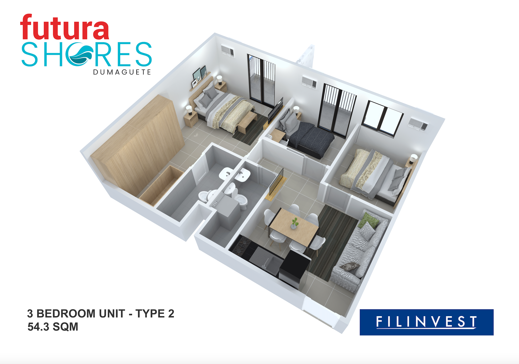 Project Name: Futura Shores Dumaguete -3 Bedroom Unit ( Type 2)
