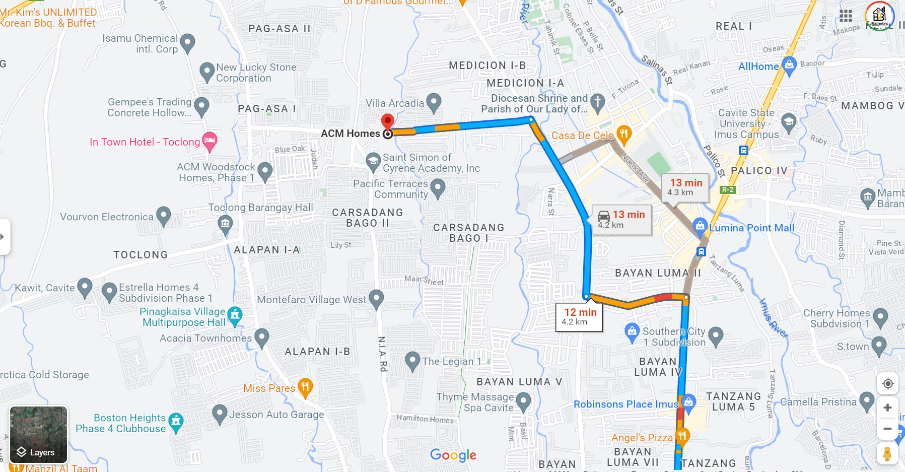 -12 minutes going to Medical Center Imus